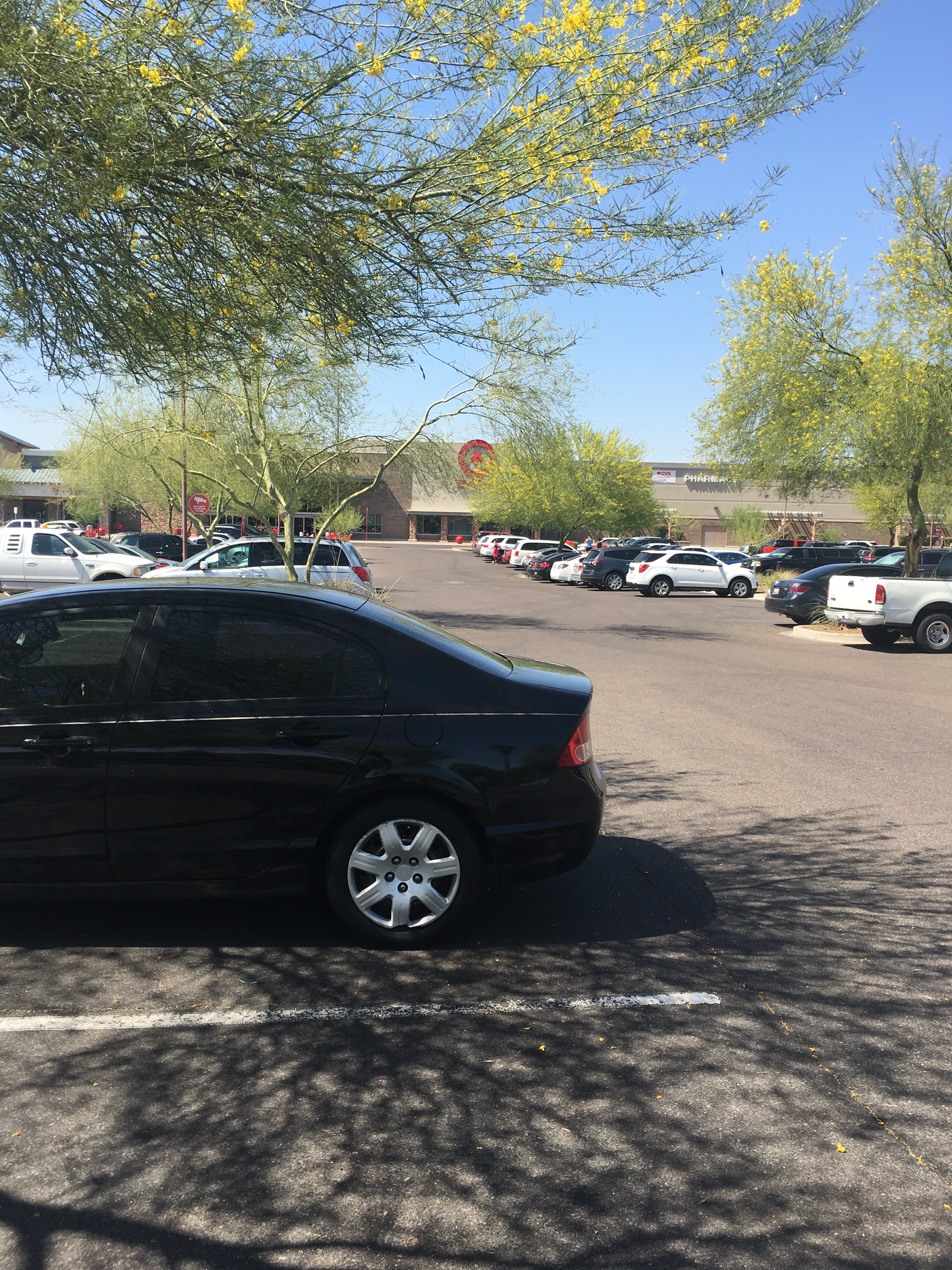 So I’ll do just about anything to get a slither of shade covering my black, Honda Civic during the summer. It’s quite pathetic and hilarious at the same time. Although the movie industry would have you believe Arizona only has dust, palm trees and cacti, we do have trees. But they are few and far between, especially when it comes to parking lots.